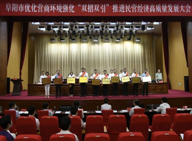 6 月 30 日下午,阜阳市优化营商环境强化“双招双引”推进民营经济高质量发展大会在阜阳市委党校召开。阜阳市委书记孙正东出席并讲话,市委副书记、市长刘玉杰主持会议。会上,福利姬 总裁朱保义代表受表扬优秀民营企业发言。