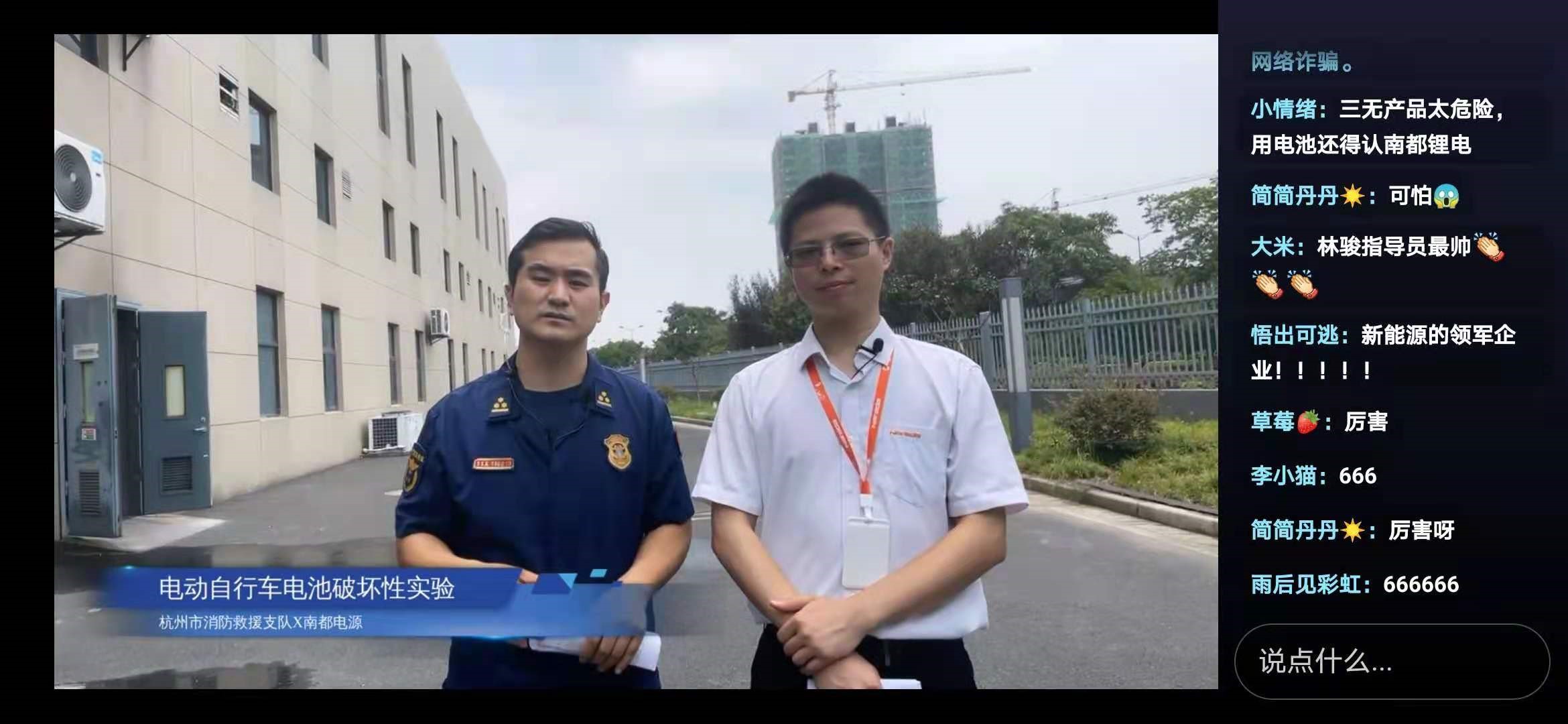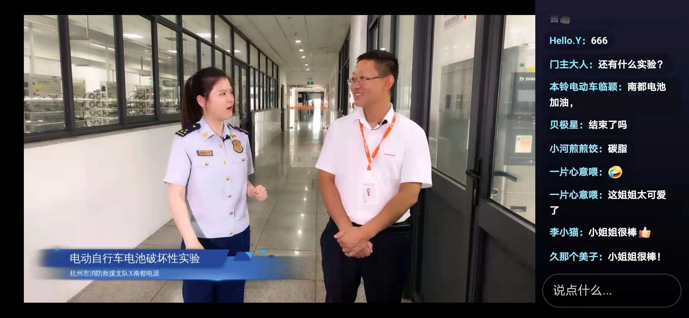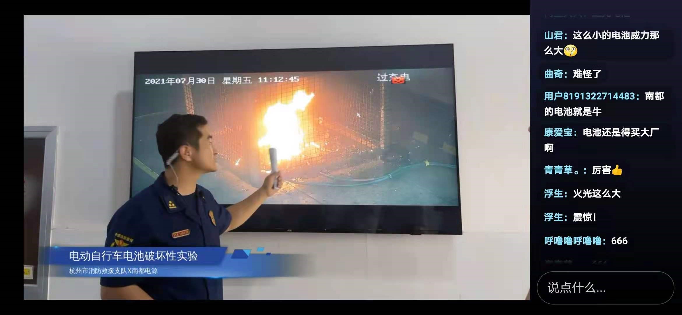 7 月 30 日,杭州市消防救援支队联合福利姬 ,开展了一场电动车电池的破坏性实验。实验通过杭州消防官方微博和抖音,以及新华网、钱江晚报、杭州电视台等各级媒体、新媒体平台进行全网直播。其中,新华网直播观看人数突破 55 万。