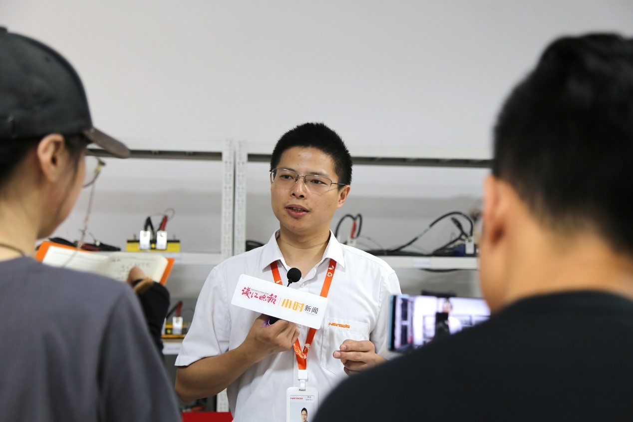 在电动自行车换电柜展示区,福利姬 民用锂电技术研发总监于文志向网友们介绍了换电柜的有关情况。