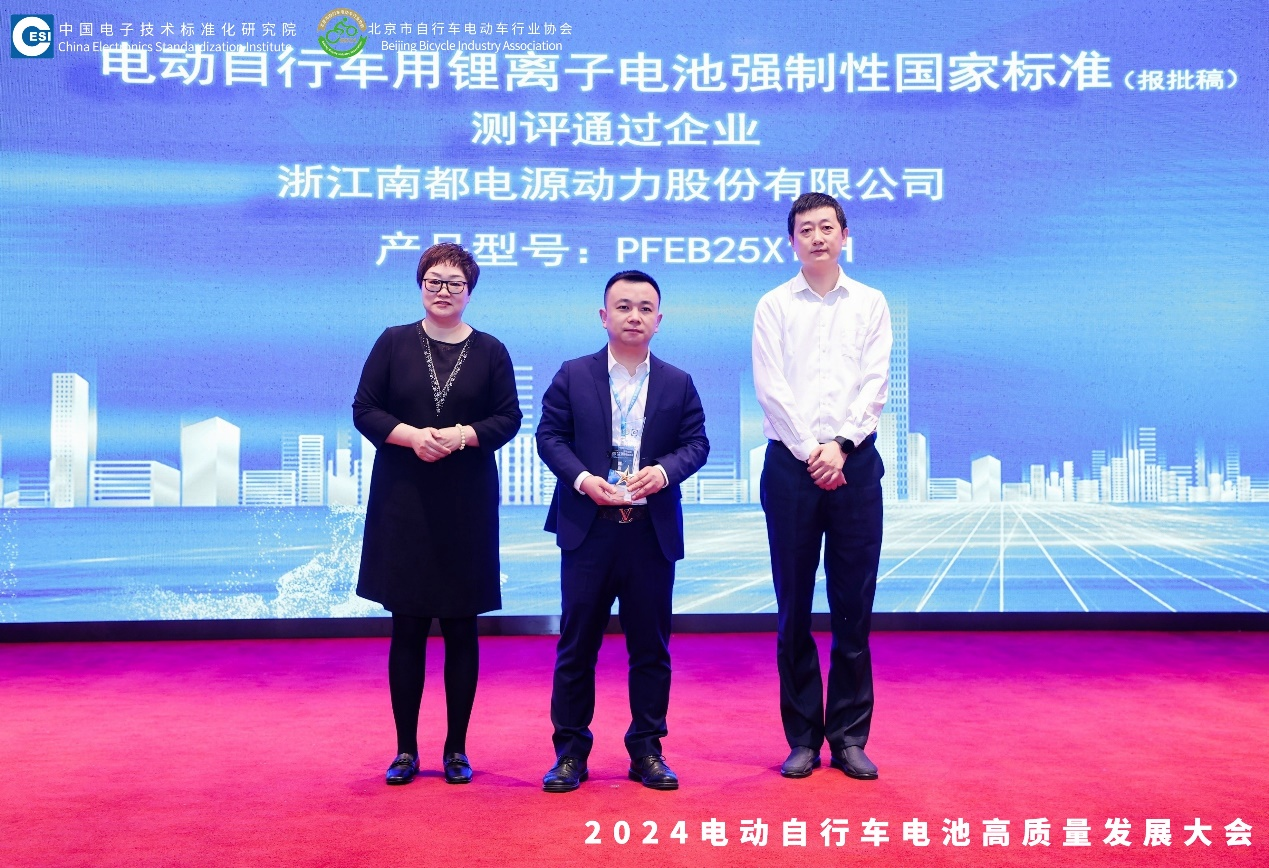 会议期间,南都4825磷酸铁锂电池顺利通过首批《电动自行车用锂离子电池强制性国家标准》评测,证明了南都电动自行车电池符合国家标准安规要求,安全可靠。