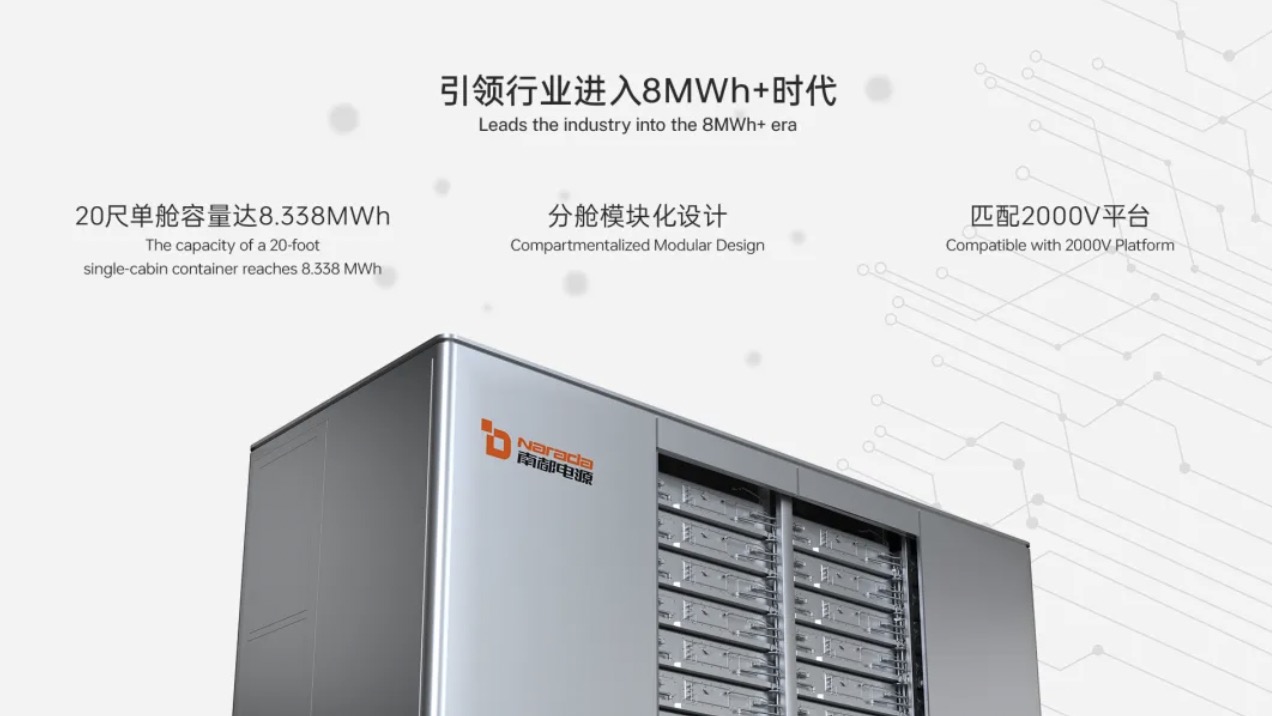 南都Center L Max 8.338MWh储能系统搭载自研超大容量固态电池。超大容量固态电池带来的能量密度提升,再加上系统的空间极致利用设计和箱内功能结构优化,令该款储能系统的单箱容量得以突破到8.338MWh,与目前主流20尺5MWh的储能系统相比,能量密度提升167%,创下行业新纪录。
